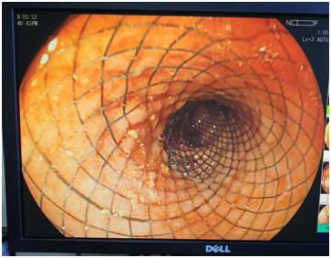 在征得患者及家属同意下,主任医师张文礼与麻醉科医师杨兴明、内镜室护师罗宁、护士王媛媛、何琳等密切合作,成功对患者施行了内镜下肠道支架植入术。手术进行非常顺利,术后患者梗阻解除,腹胀当即缓解,当天下午即可进食,各方面状况明显改善,生活质量明显提高。